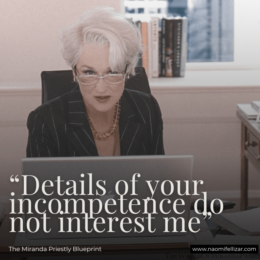 One of Miranda Priestly’s most famous quotes is, “Details of your incompetence do not interest me.”